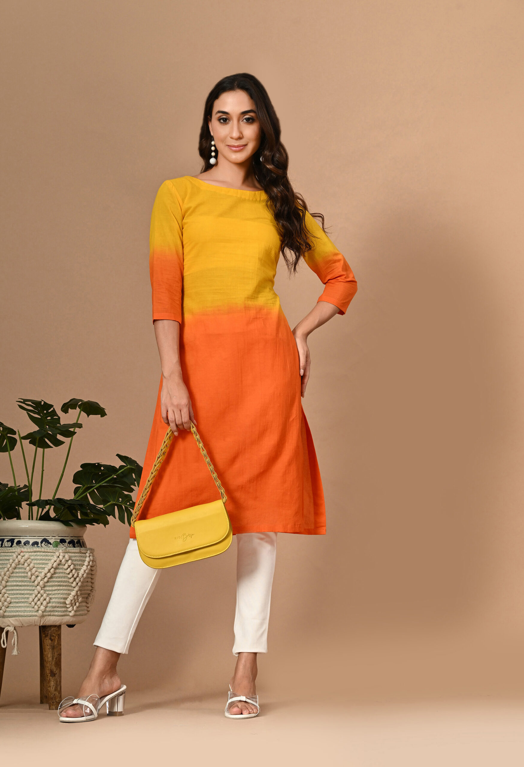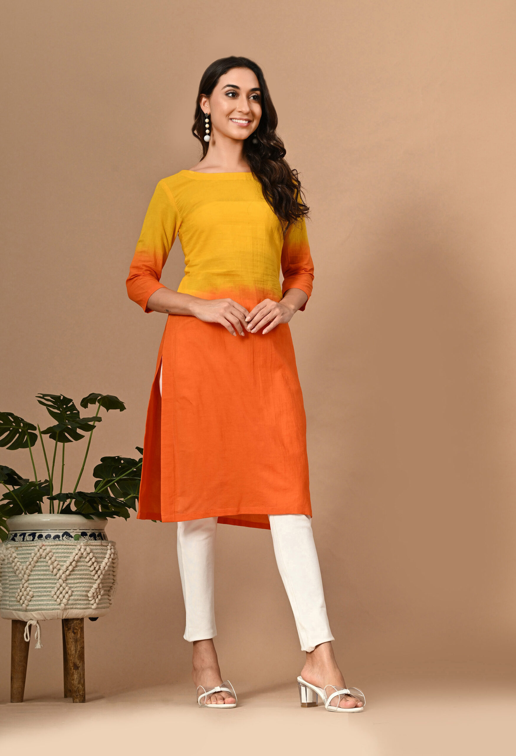 Classic beige meets artisanal charm in our Ajrakh print Kurta and Pants Set, featuring a straight fit, jacket collar, and elbow-length sleeves for effortless style.”